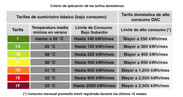 La CFE cuenta actualmente con siete tarifas domésticas y una de alto consumo, de las cuales seis reciben el estímulo para zonas localizadas cálidas en México.