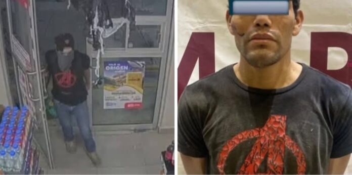 Elementos policiacos detuvieron a un hombre que presuntamente asaltó una tienda Oxxo ubicada en la calle 13 y avenida Serdán.