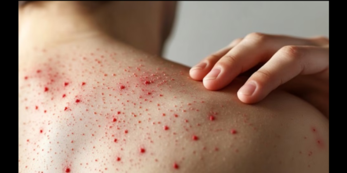 Los síntomas más comunes incluyen fiebre alta, ronchas (exantema) que inician en la cara y se extienden al cuerpo, tos, congestión nasal y malestar general.